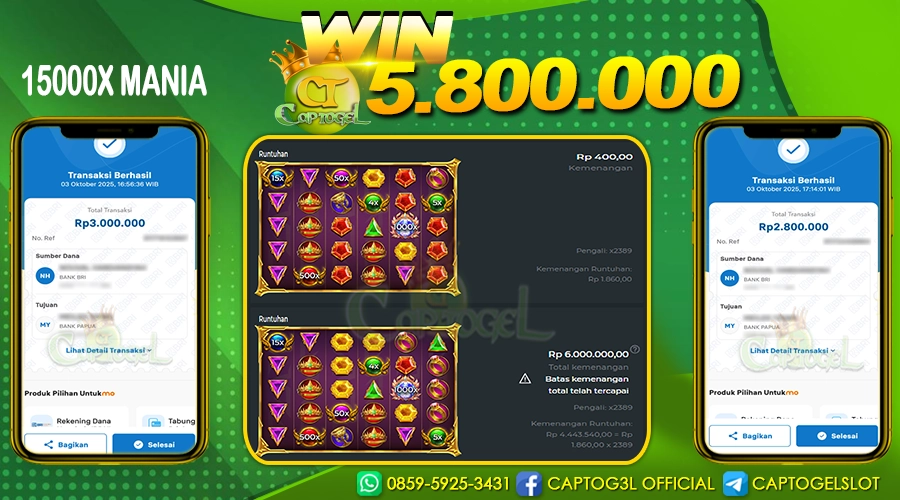 JACKPOT 15000X MANIA MENANGKAN DI CAPTOGEL 03 OKTOBER 2025