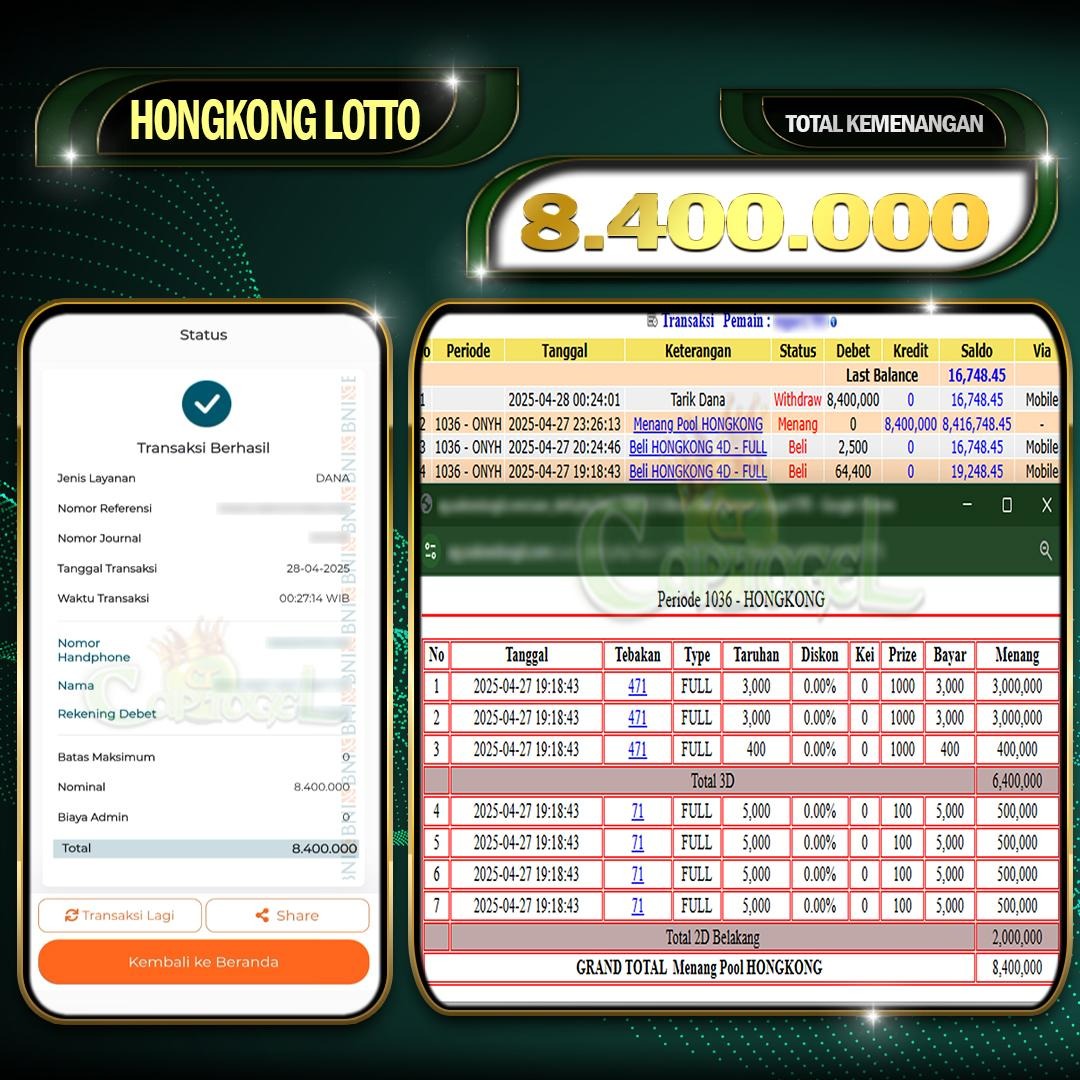 JACKPOT JP HONGKONG LOTTO MENANGKAN CAPTOGEL 27 April 2025