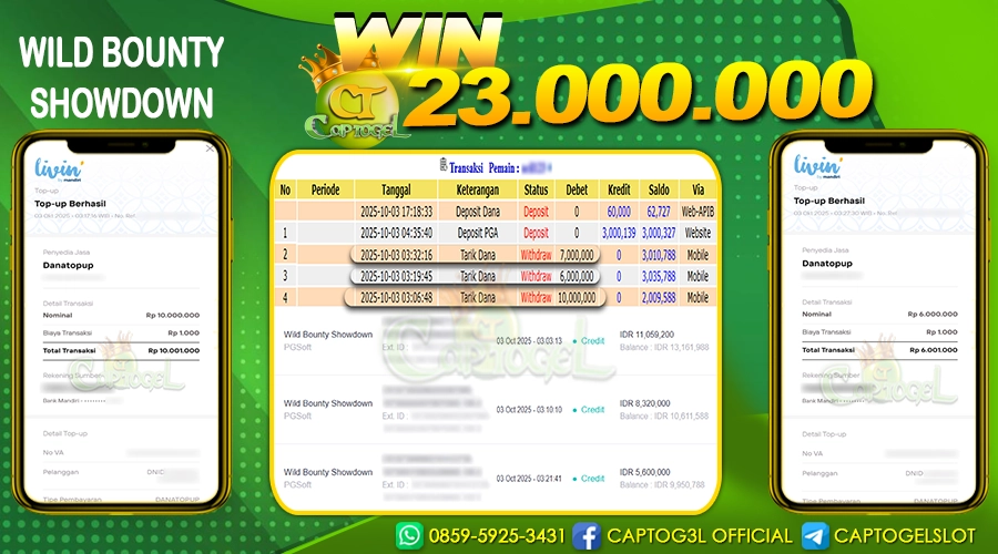 CAPTOGEL – Selamat Kepada Pemenang User ID: ge5*** dalam permainan WILD BOUNTY SHOWDOWN sebesar Rp 23.000.000 03 OKTOBER 2025 – bermain di situs game online terpercaya yang telah terbukti dengan bukti jackpot (JP) yang resmi dan terjamin di Indonesia. Platform ini memberikan pengalaman bermain yang aman dan menyenangkan bagi para penggemar game online. Dengan hadirnya CAPTOGEL, pemain dapat menikmati kemudahan akses ke berbagai permainan seru, peluang untuk memenangkan hadiah besar, serta berbagai keuntungan menarik yang telah disiapkan khusus untuk member lama maupun member baru. CAPTOGEL dirancang dengan fokus pada kenyamanan dan keamanan pemain, memastikan bahwa setiap pemain dapat bermain dengan tenang, tanpa khawatir, dan meraih keuntungan maksimal. Dengan pembuktian kemenangan seperti yang diraih oleh User ID: ge5*** dalam permainan JP WILD BOUNTY SHOWDOWN , CAPTOGEL semakin menunjukkan komitmennya sebagai platform yang memberikan kesempatan menang nyata kepada para penggunanya.
