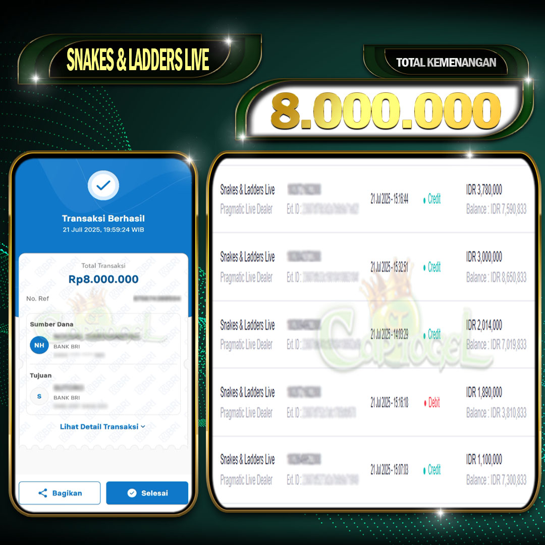 CAPTOGEL – Selamat Kepada Pemenang User ID: ror*** dalam permainan SNAKES & LADDERS LIVE sebesar Rp 8.000.000 21 JULY 2025 – bermain di situs game […]