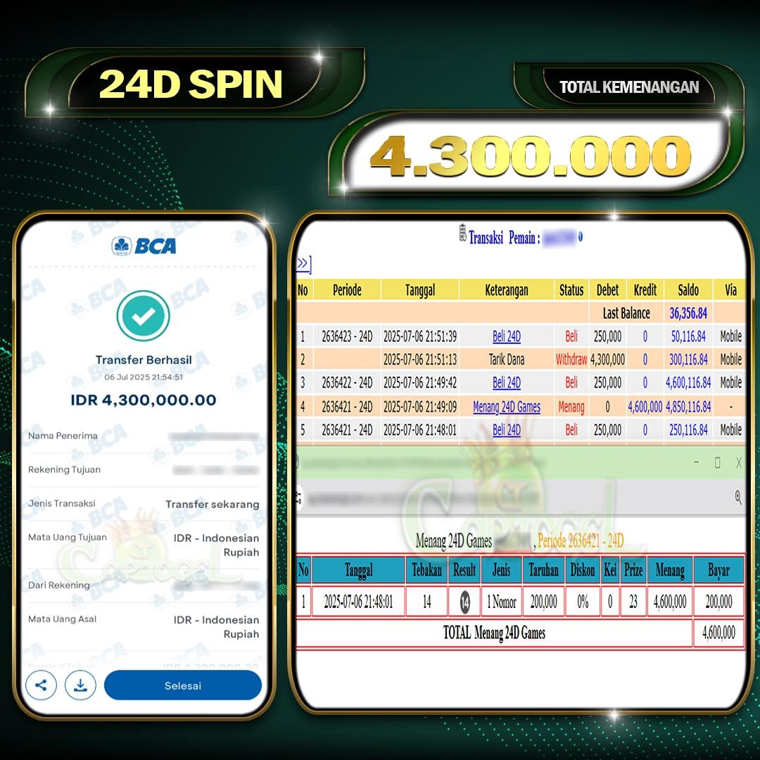 CAPTOGEL – Selamat Kepada Pemenang User ID: slw*** dalam permainan 24D SPIN sebesar Rp 4.300.000 06 JULY 2025 – bermain di situs game online terpercaya […]