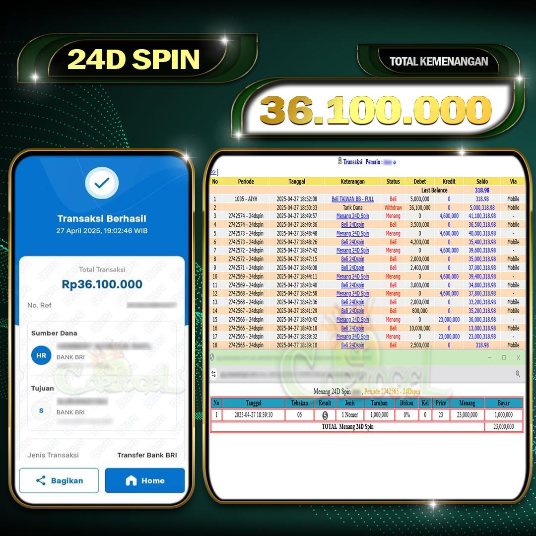 CAPTOGEL – Selamat Kepada Pemenang User ID: inn** 24D SPIN 36.000.000 Juta 27 April 2025 – bermain di situs game online terpercaya yang telah terbukti dengan […]