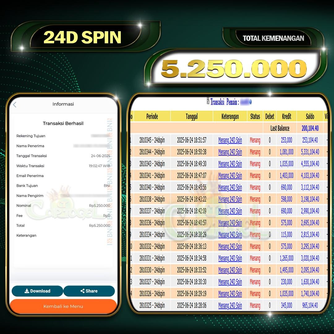 Read moreCAPTOGEL- JP 24D SPIN 5 Juta 24 JUNI 2025