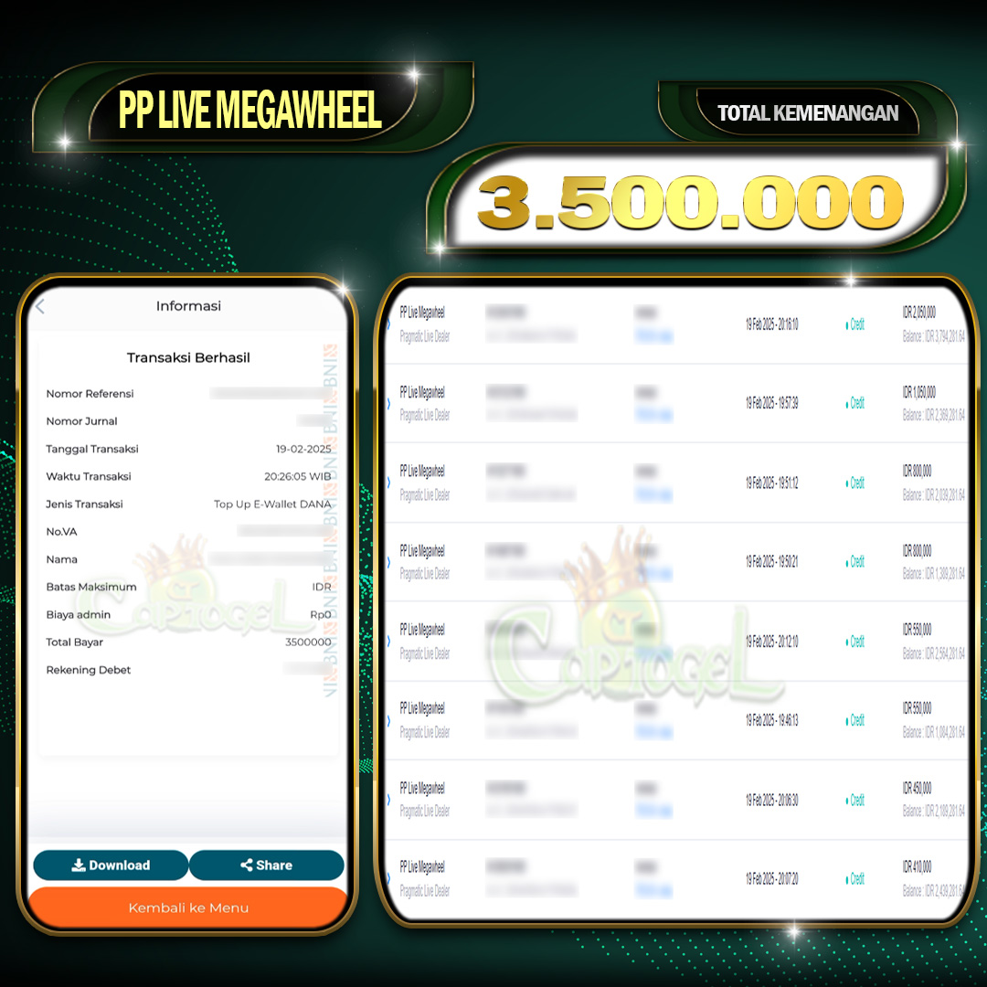Read moreCAPTOGEL- JP PP LIVE MEGAWHEEL 3 Juta 19 Februari 2025