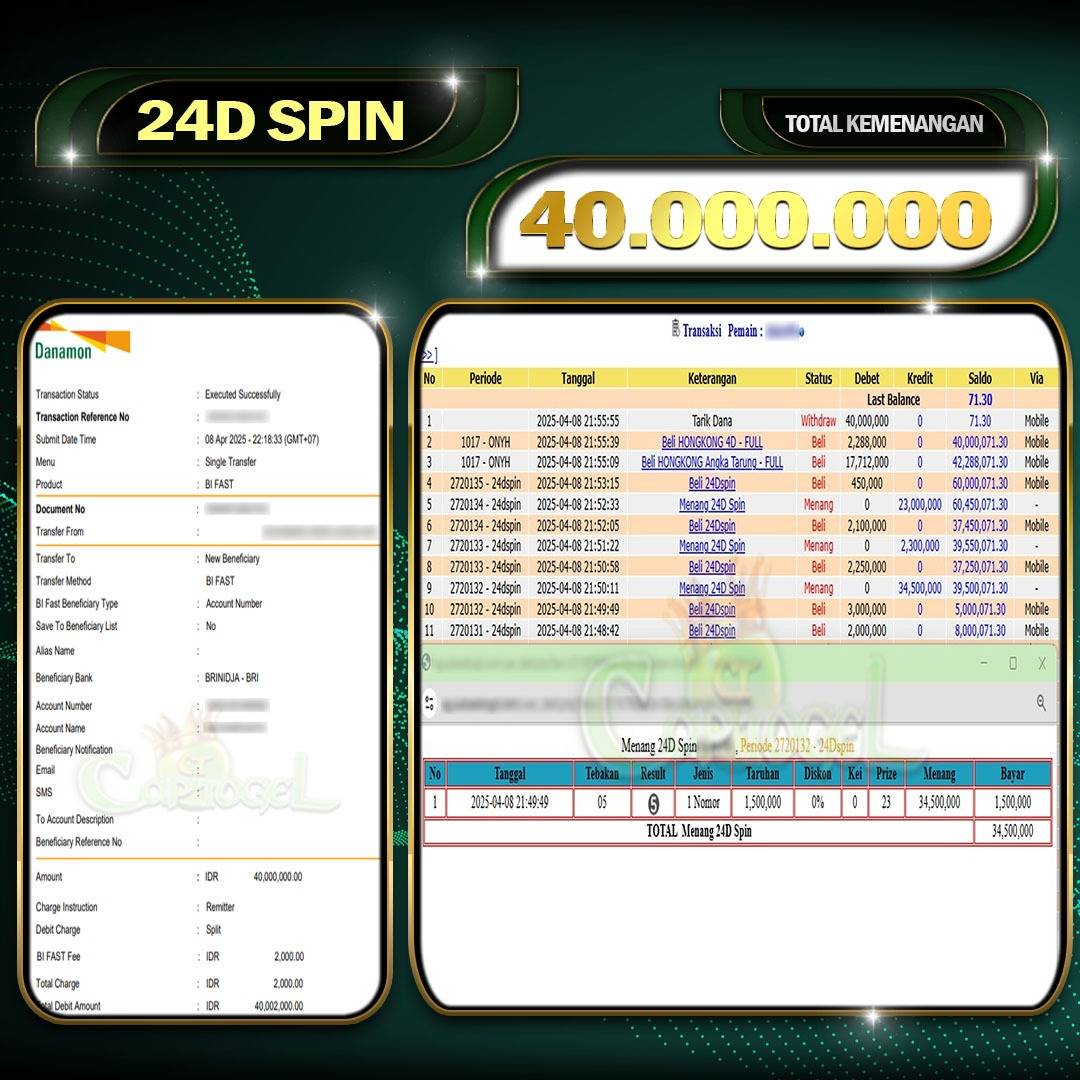 CAPTOGEL – Selamat Kepada Pemenang User ID: kny** 24D SPIN 40.000.000 Juta 08 April 2025 – bermain di situs game online terpercaya yang telah terbukti dengan […]