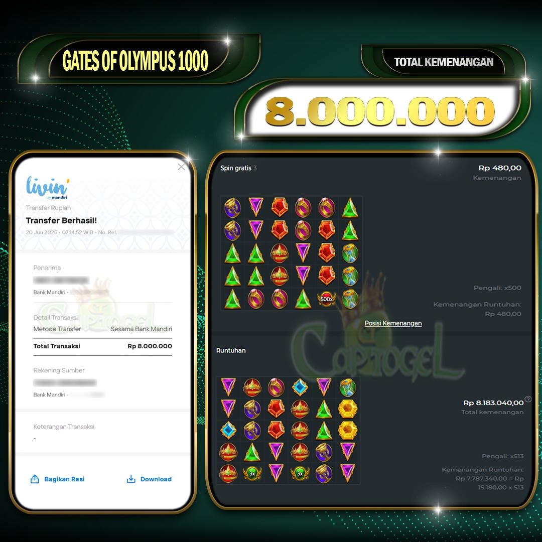 CAPTOGEL- JP GATES OF OLYMPUS 1000 8 Juta 20 JUNI 2025