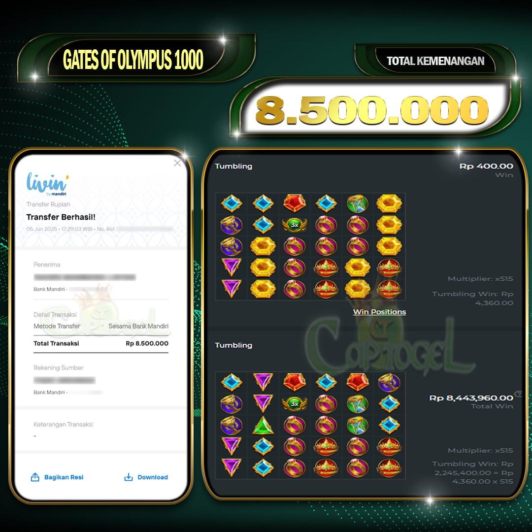 Read moreCAPTOGEL- JP GATES OF OLYMPUS 1000 8 Juta 05 JUNI 2025
