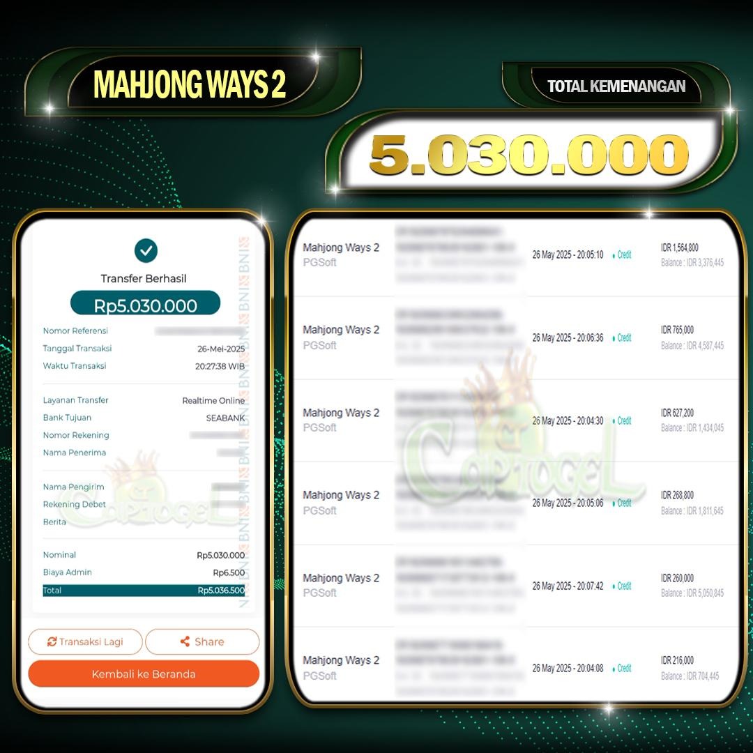 Read moreCAPTOGEL- JP MAHJONG WAYS 6 Juta 26 MEI 2025
