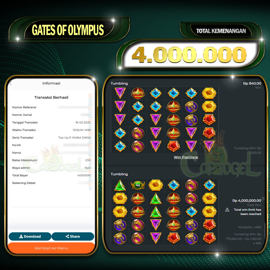 CAPTOGEL- JP GATES OF OLYMPUS 4 Juta 16 Februari 2025
