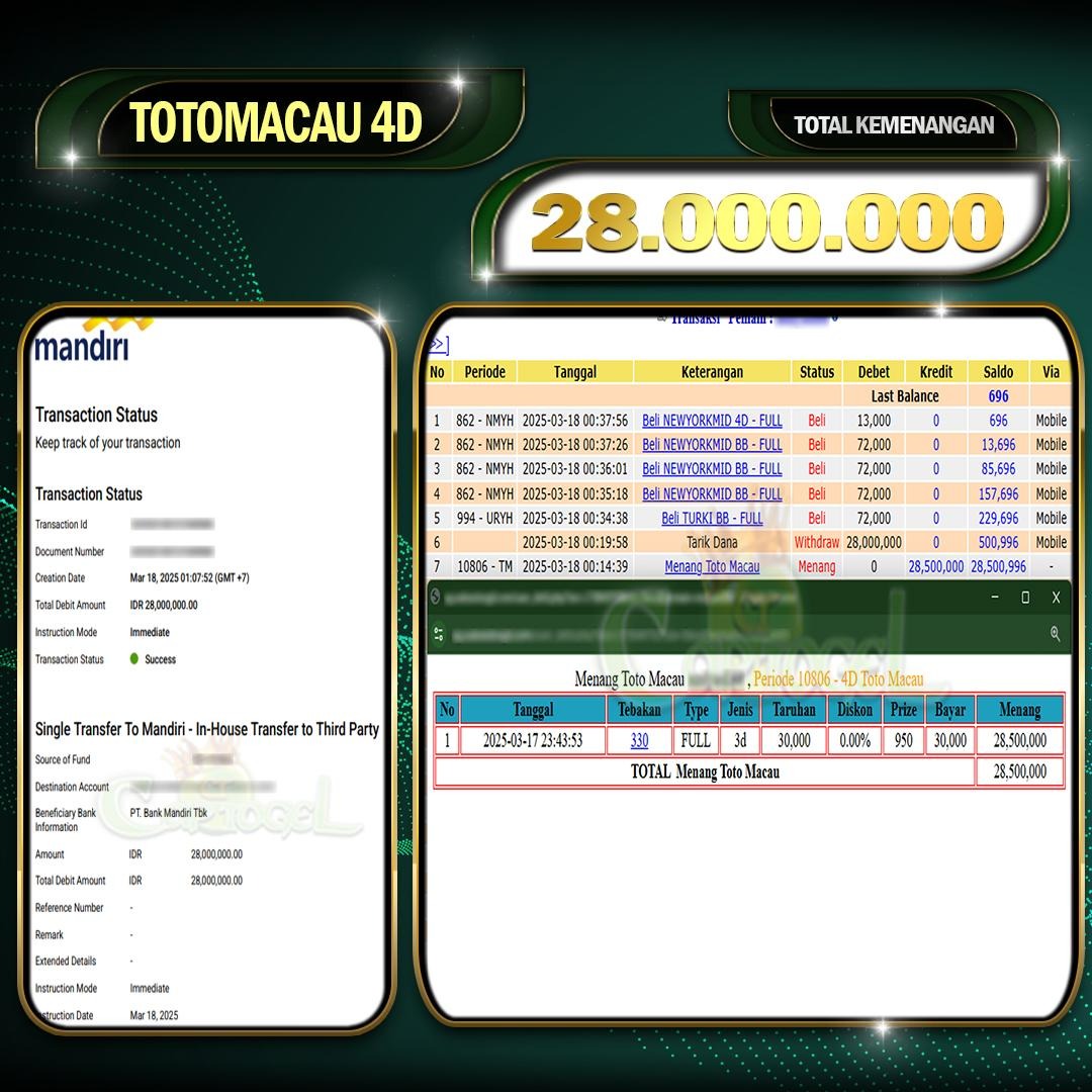 CAPTOGEL – Selamat Kepada Pemenang User ID: mly*** TOTO MACAU 4D 28.000.000 Juta 18 Maret 2025 – bermain di situs game online terpercaya yang telah terbukti […]