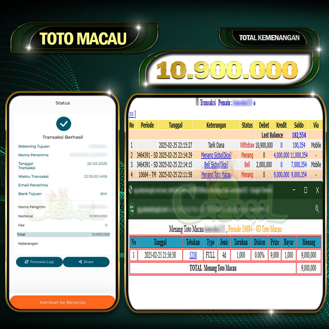 CAPTOGEL – Selamat Kepada Pemenang User ID: iik*** TOTO MACAU 4D 10.000.000 Juta 25 Februari 2025 – bermain di situs game online terpercaya yang telah terbukti […]