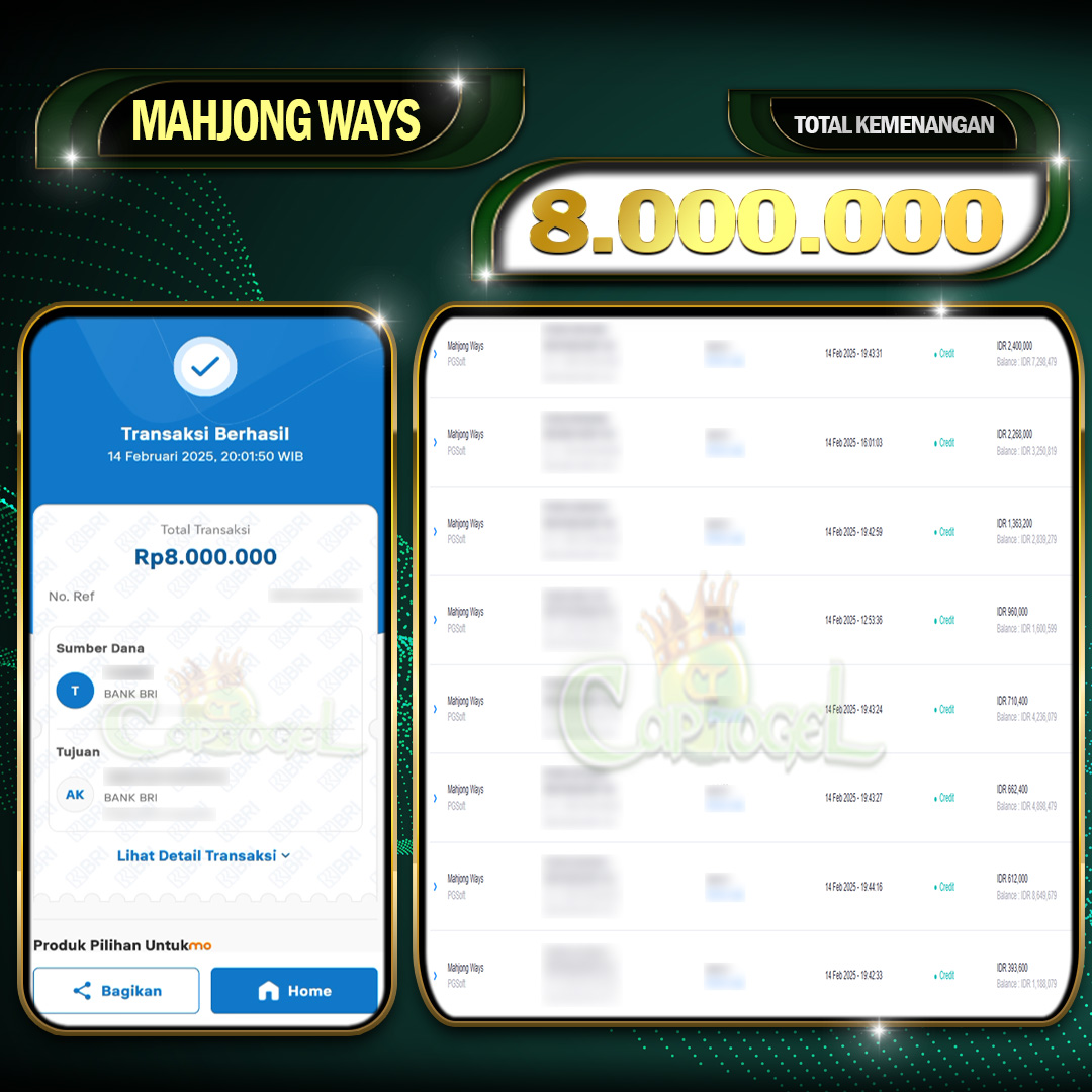 CAPTOGEL- JP MAHJONG WAYS 8 Juta 14 Februari 2025