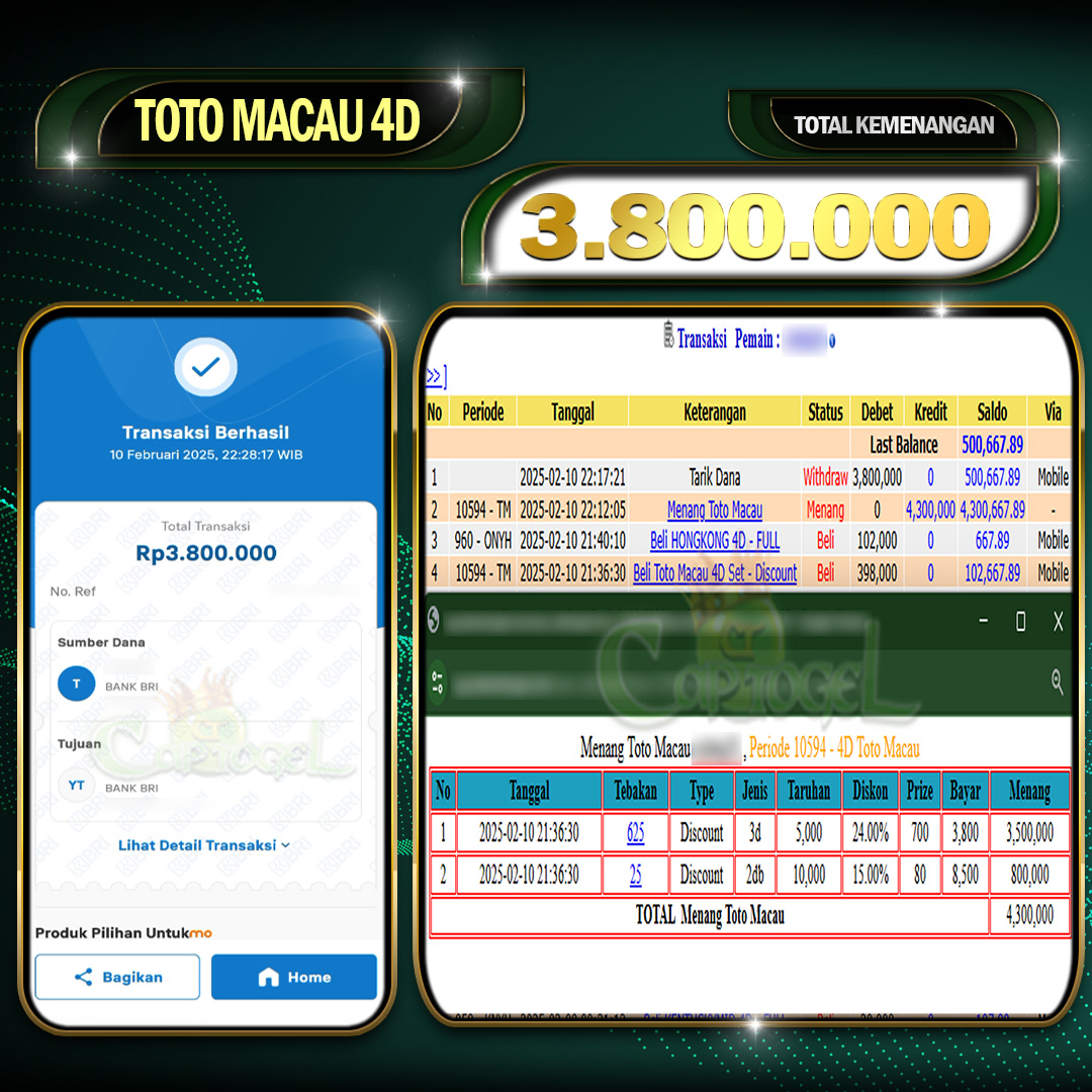 Read moreCAPTOGEL- JP TOTO MACAU 4D 3 Juta 10 Februari 2025
