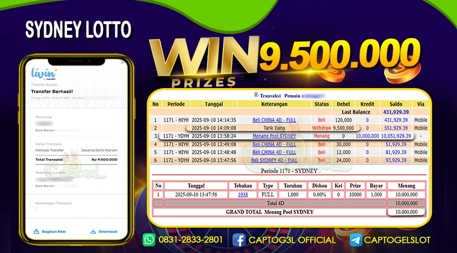 CAPTOGEL – Selamat Kepada Pemenang User ID: 3as*** dalam permainan SYDNEY LOTTO sebesar Rp 9.500.000 10 SEPTEMBER 2025 – bermain di situs game online terpercaya […]