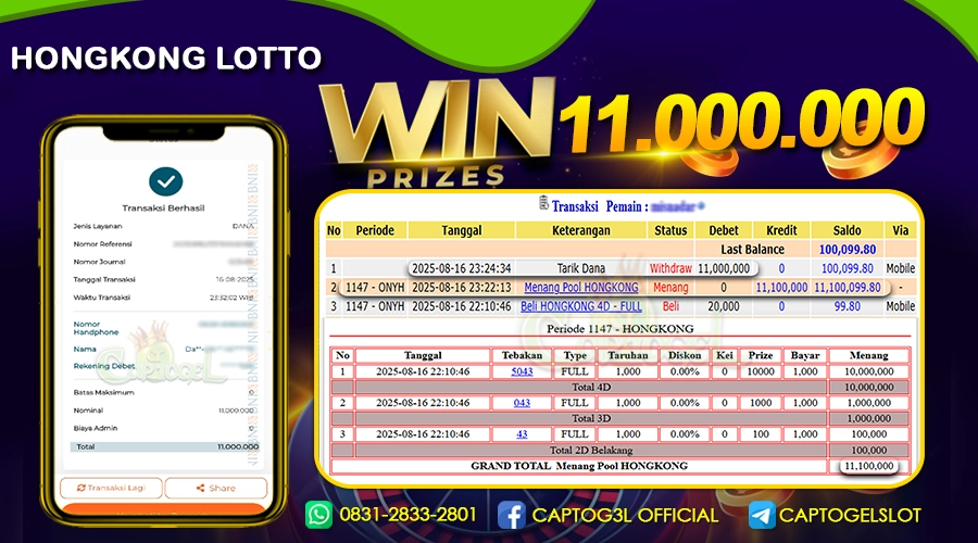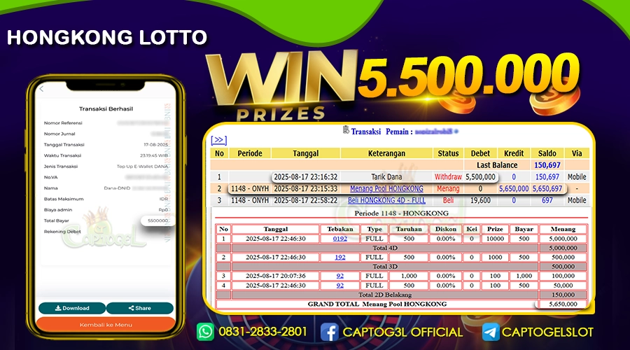 CAPTOGEL – Selamat Kepada Pemenang User ID: l14*** dalam permainan HONGKONG LOTTO sebesar Rp 5.500.000 17 AGUSTUS 2025 – bermain di situs game online terpercaya […]
