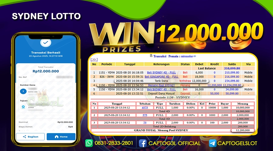 Read moreCAPTOGEL- JP SYDNEY LOTTO 4 Juta 12 AGUSTUS 2025