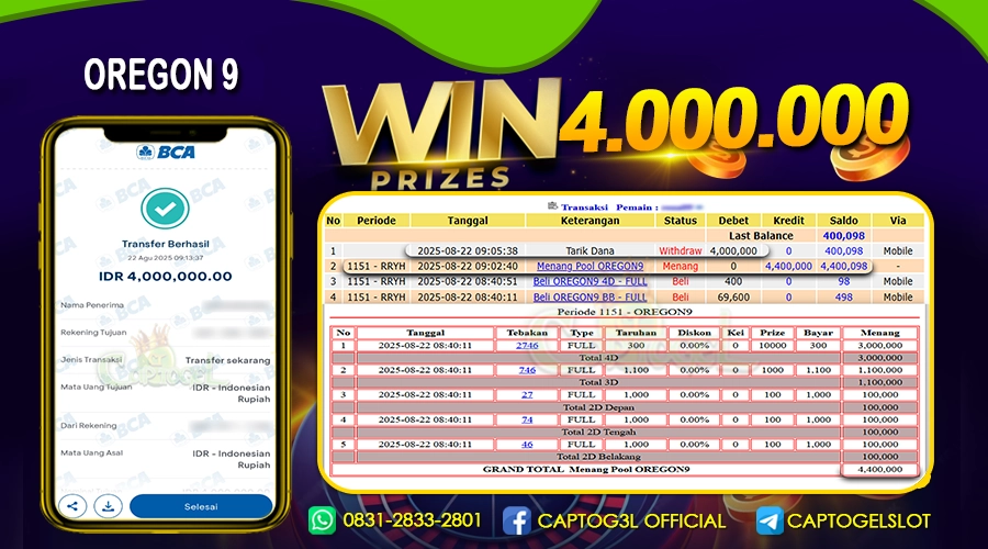 CAPTOGEL – Selamat Kepada Pemenang User ID: bri*** dalam permainan OREGON9 sebesar Rp 4.000.000 22 AGUSTUS 2025 – bermain di situs game online terpercaya yang […]