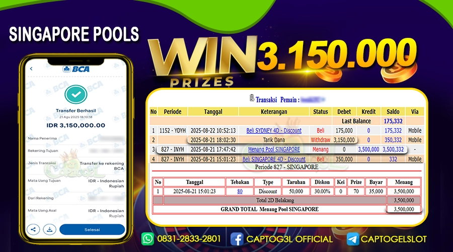 CAPTOGEL – Selamat Kepada Pemenang User ID: jum*** dalam permainan SINGAPORE POOLS sebesar Rp 3.100.000 21 AGUSTUS 2025 – bermain di situs game online terpercaya […]