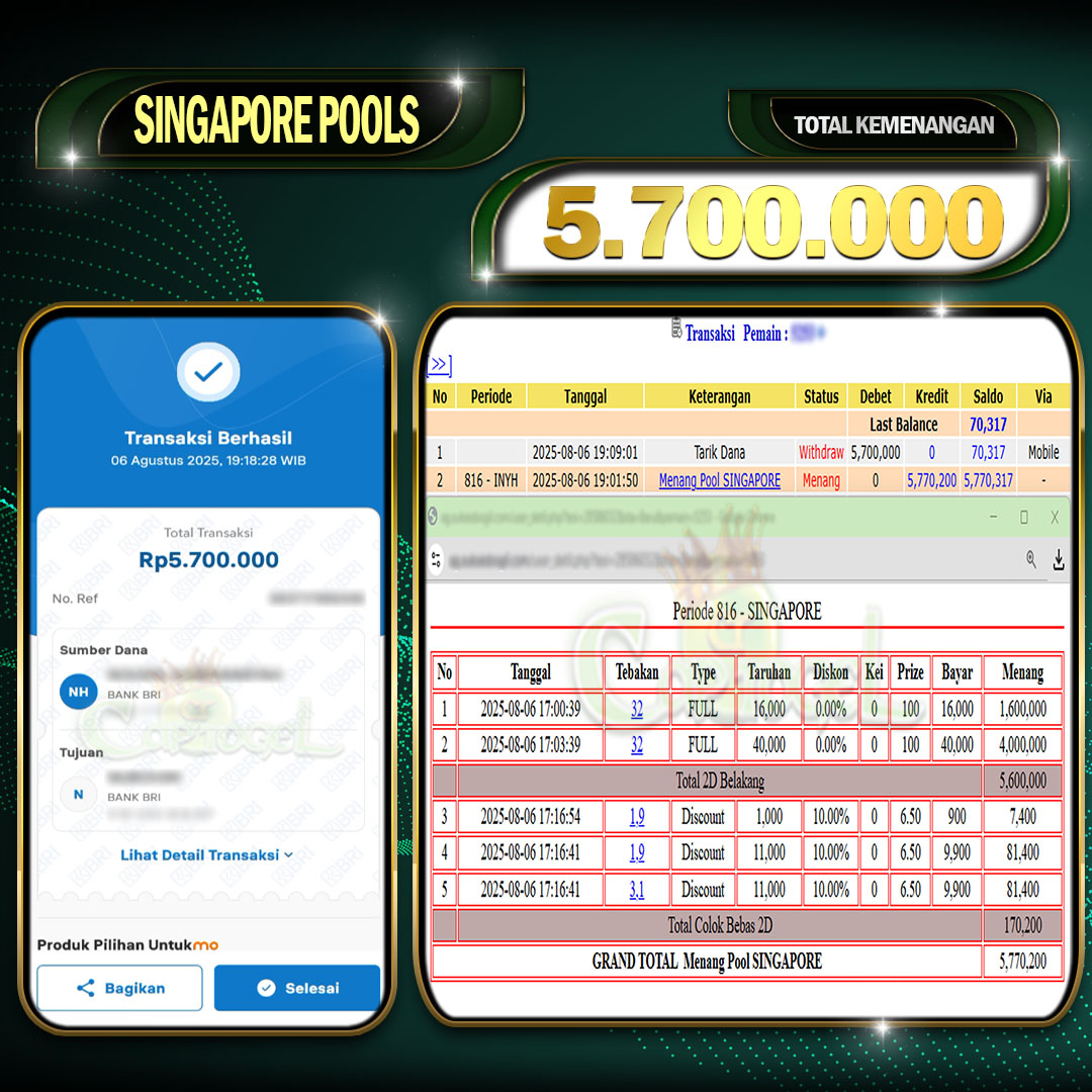 Read moreCAPTOGEL- JP SINGAPORE POOLS 5 Juta 06 AGUSTUS 2025