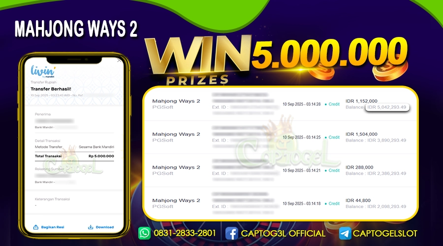Read moreCAPTOGEL – Selamat Kepada Pemenang User ID: wya*** dalam permainan MAHJONG WAYS 2 sebesar Rp 5.000.000 10 SEPTEMBER 2025 – bermain di situs game online […]