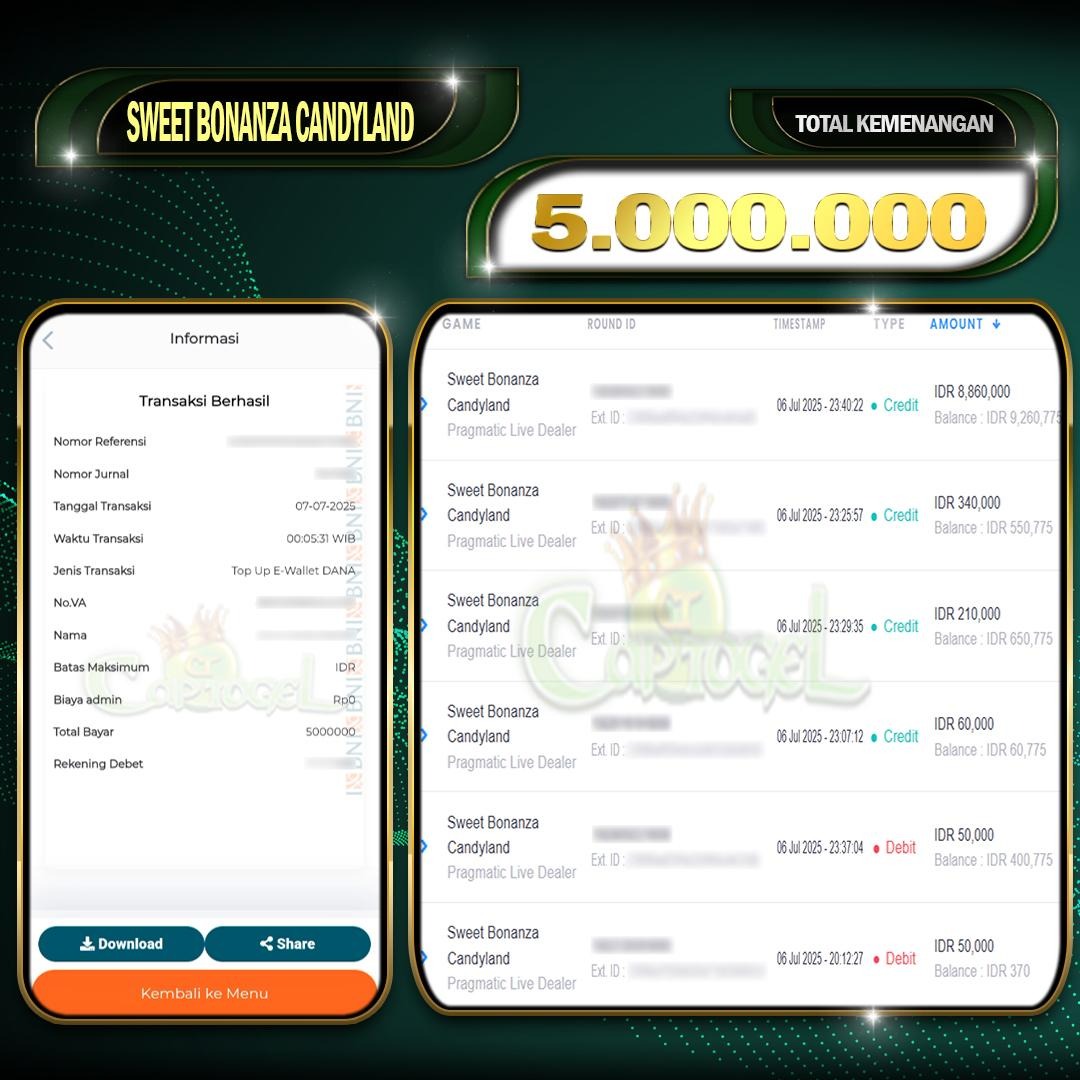 CAPTOGEL- JP SWEET BONANZA CANDYLAND 5 Juta 07 JULY 2025